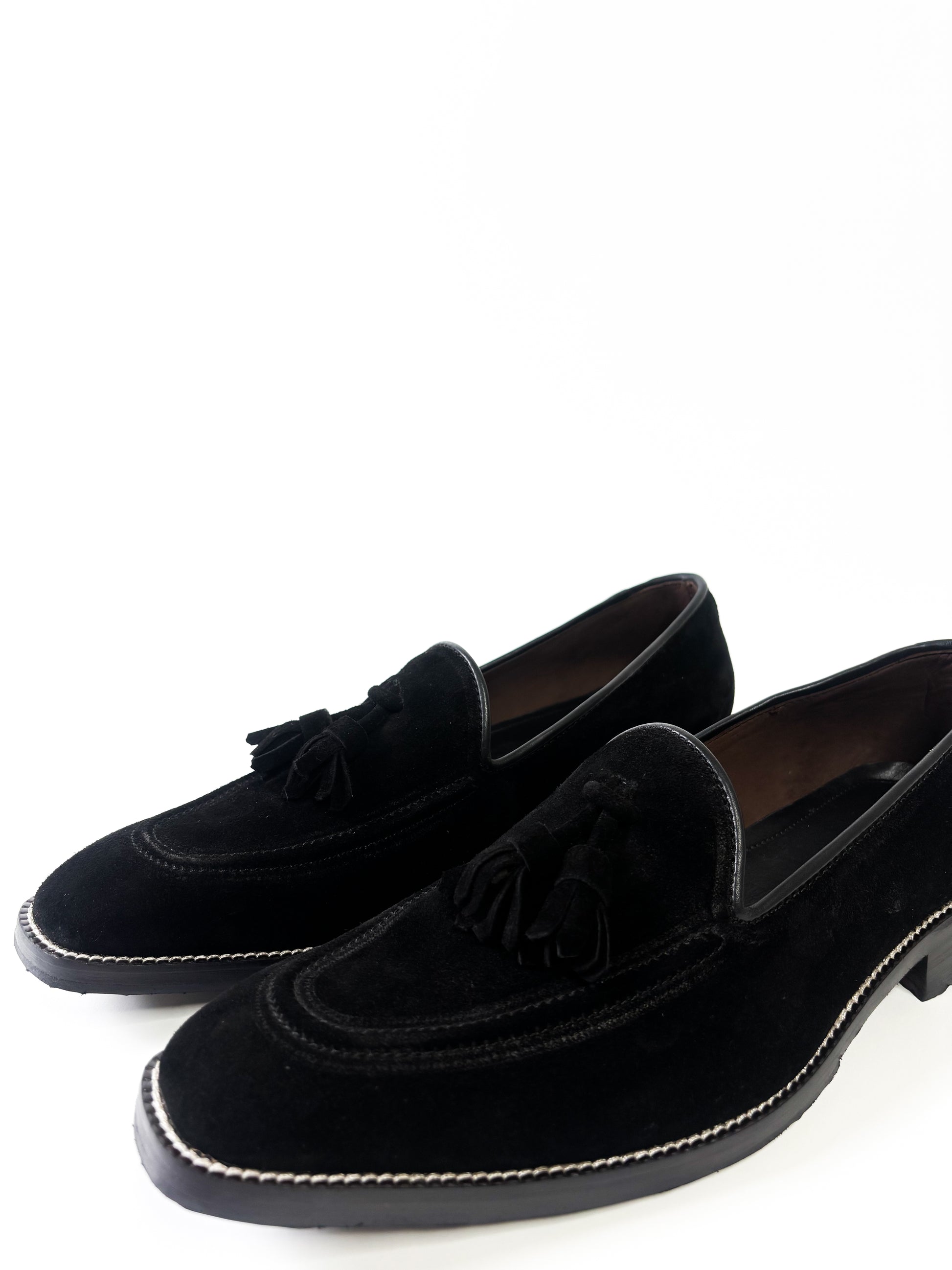 Elevate your everyday elegance with this impeccably handcrafted black suede tassel loafer — a modern classic that embodies quiet sophistication. Each pair is meticulously made by master artisans, using the finest Italian suede to achieve a velvety touch and a timelessly refined silhouette.